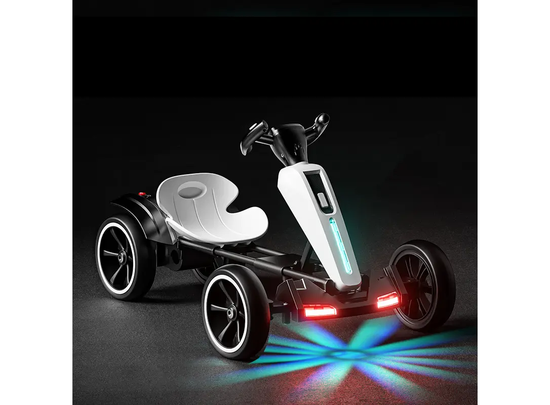 ბავშვთა დასაკეცი ელექტრო კარტინგი 2028‑W წარმოადგენს სრულყოფილ კომბინაციას პრაქტიკის, ფუნქციონალის და თანამედროვე დიზაინის შორის. დასაკეცი ჩარჩო უზრუნველყოფს მარტივ ტრანსპორტირებას და შენახვას სახლში ან ავტომობილში. 12 V ბატარეა მუშაობს ერთდროულად ძლიერი ძრავით (~200–350 W), რაც უზრუნველყოფს სტაბილურ და დინამიურ გადაადგილებას გარეთ. LED განათებები ხაზს უსვამენ ვიზუალურ ფუნქციონალს და ზრდიან უსაფრთხოებას ღამის დროში, ზოგი ვერსია Bluetooth ფუნქციითაც გამოირჩევა, რაც მოძრაობას მუსიკალურად განახლებთ. სწრაფი და შენარჩუნებადი მოძრაობისთვის გათვალისწინებულია სხვადასხვა რეჟიმი – დაბალი და მაღალი სიჩქარე, ზოგჯერ drift რეჟიმით. ჩადგმულია რეგულირებადი სავარძლები ზრდის მიხედვით, უსაფრთხოების კრამიტებს შორისაა სავარძელი და ბედინგით ბოძები. მომხმარებლის მაქსიმალური ტევადობა მერყეობს 35‑85 კგ შორის, რაც მოქნილი ასაკობრივი ჯგუფისთვის არის შესაფერისი. ეს მოდელი იდეალურია ეზოში, ბაღში და ქალაქგარეთ გადაადგილებისთვის, სადაც მნიშვნელოვანია კომფორტი, ინტერაქტიულობა და მშობლებისთვის უსაფრთხო დიზაინი.