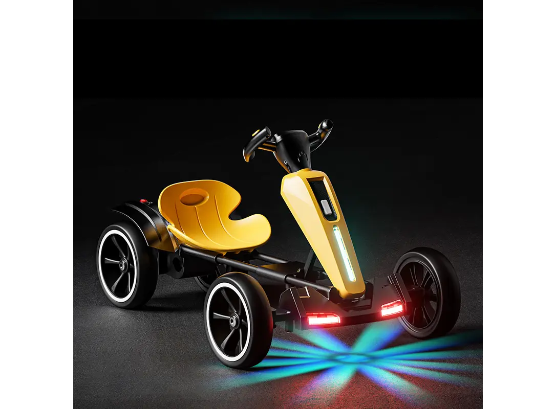 ბავშვთა დასაკეცი ელექტრო კარტინგი 2028‑Y წარმოადგენს თანამედროვე და პრაქტიკულ გადაწყვეტილებას პატარა დონეზე გასართობად და გზაზე გასეირნებისთვის. ფოლდებად ჩანერგილი ჩარჩო მარტივად იკეცება, რაც დანადგარს შესაფერისს ხდის შენახვისა და ტრანსპორტირებისათვის მანქანაში ან ბინის კუთხეში. მოწყობილობა გააჩნია LED განათებები, რომლებიც არა მხოლოდ ვიზუალურად მიმზიდველია, არამედ ზრდის ხილვადობას ღამით. ზოგიერთ ცვლილებულ ვერსიაში შესაძლოა Bluetooth მოდული იყოს დასაკავშირებლად და მუსიკის მოსასმენად. 12 V ბატარეა ან 350–390 W ძრავები უზრუნველყოფენ სტაბილურ და აქტიურ მოძრაობას. არ არის გამორიცხული არსებობდეს drift რეჟიმი ან რეგულირებადი სხეულის ზომის სავარძელი უსაფრთხოებისთვის. ტევადობა მერყეობს ~35‑დან 85 კგ-მდე სხვადასხვა ვარიანტში. ეს მოდელი იდეალურია 2‑დან 4 წლამდე ასაკის ბავშვებისთვის, გამოსაყენებლად ეზოში, ბაღში და ქალაქგარეთ მცირე გასეირნებაზე.