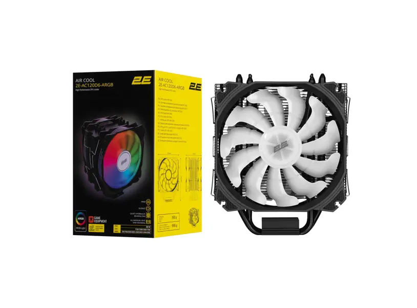 ქულერი 2E 2E-AC120D6-ARGB Air Cool, 120mm, 1700rpm, Cooler, Black