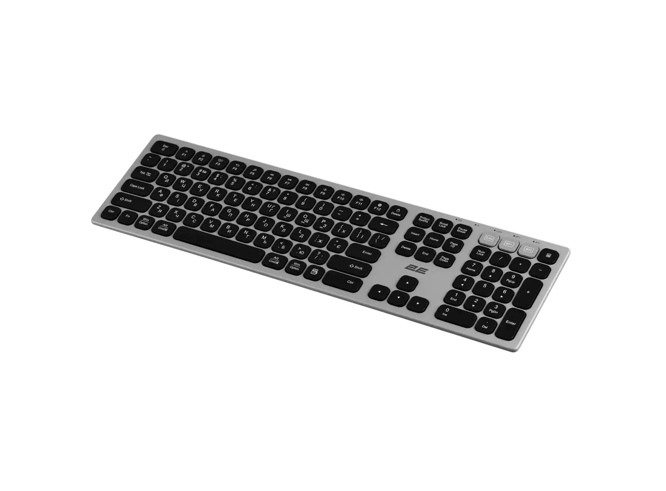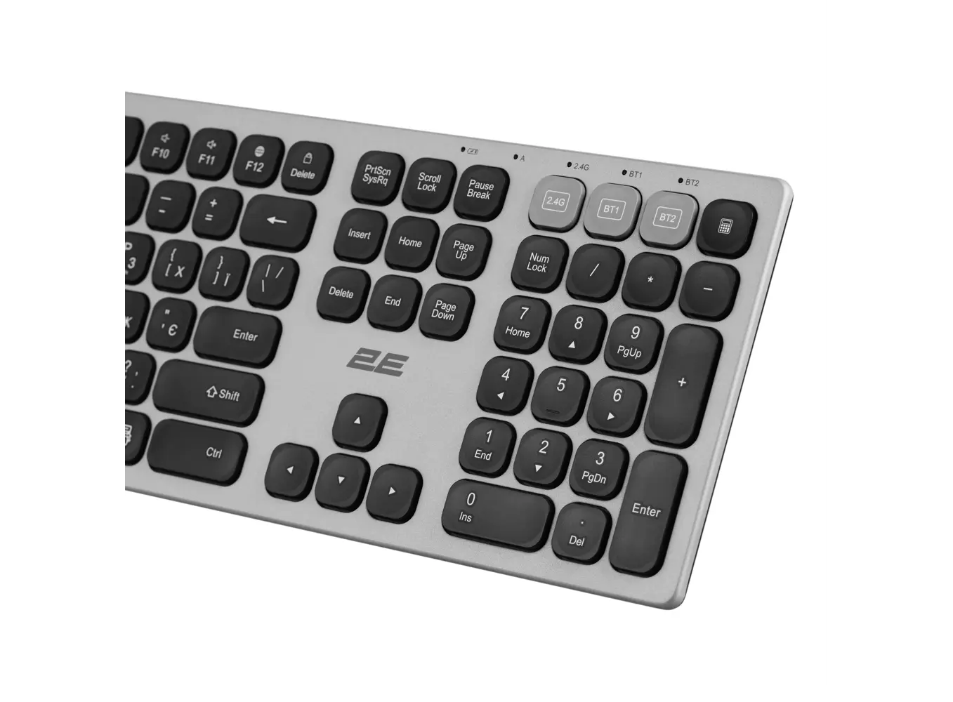 კლავიატურა 2E 2E-KS270WBGR Scissor, Wireless, USB, Bluetooth, Keyboard, Grey/Black