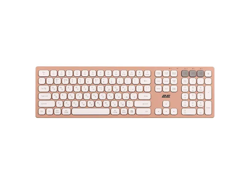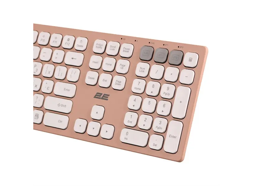 კლავიატურა 2E 2E-KS270WBPN Scissor, Wireless, USB, Bluetooth, Keyboard, Pink/White