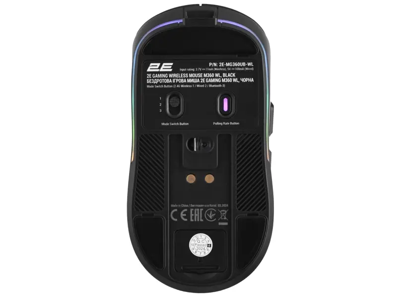 მაუსი 2E 2E-MG360UB-WL, Wireless, RGB , 2.4G, Bluetooth, USB, Gaming Mouse, Black