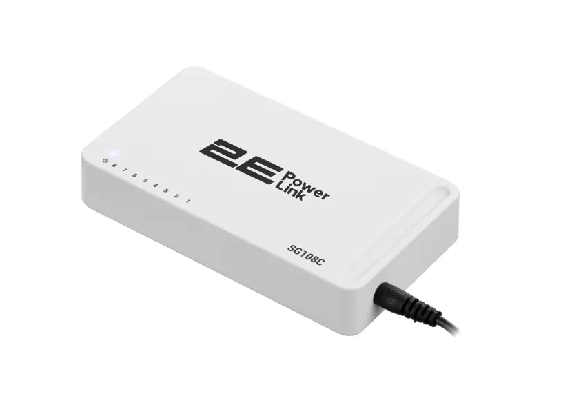 სვიჩი 2E PowerLink SG108C წარმოადგენს 8-პორტიან გიგაბიტურ არაკონფიგურირებად ქსელურ გადამრთველს, რომელიც განკუთვნილია მცირე და საშუალო ზომის ქსელებისთვის. მოწყობილობა აღჭურვილია 8 x 10/100/1000 Mbps RJ45 პორტით, რაც უზრუნველყოფს მაღალი სიჩქარის მონაცემთა გადაცემას. Auto-MDI/MDIX ფუნქცია ამარტივებს კაბელების გამოყენებას, ხოლო IEEE 802.3x ნაკადის კონტროლი უზრუნველყოფს სტაბილურ მონაცემთა გადაცემას. სვიჩი მუშაობს Store-and-Forward რეჟიმში, რაც უზრუნველყოფს მონაცემთა ეფექტურ გადამუშავებას. კომპაქტური და მსუბუქი პლასტმასის კორპუსი, თეთრი ფერის დიზაინით, იდეალურია სამუშაო მაგიდაზე დასადგმელად. მოწყობილობა მუშაობს 5V/0.55A კვების ბლოკით და არ საჭიროებს დამატებით კონფიგურაციას, რაც ამარტივებს მის გამოყენებას.