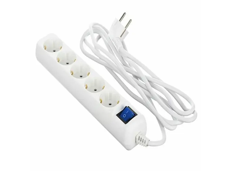 დამაგრძელებელი 2E 5XSchuko with switch, 3G*1.5mm2, 3m, white