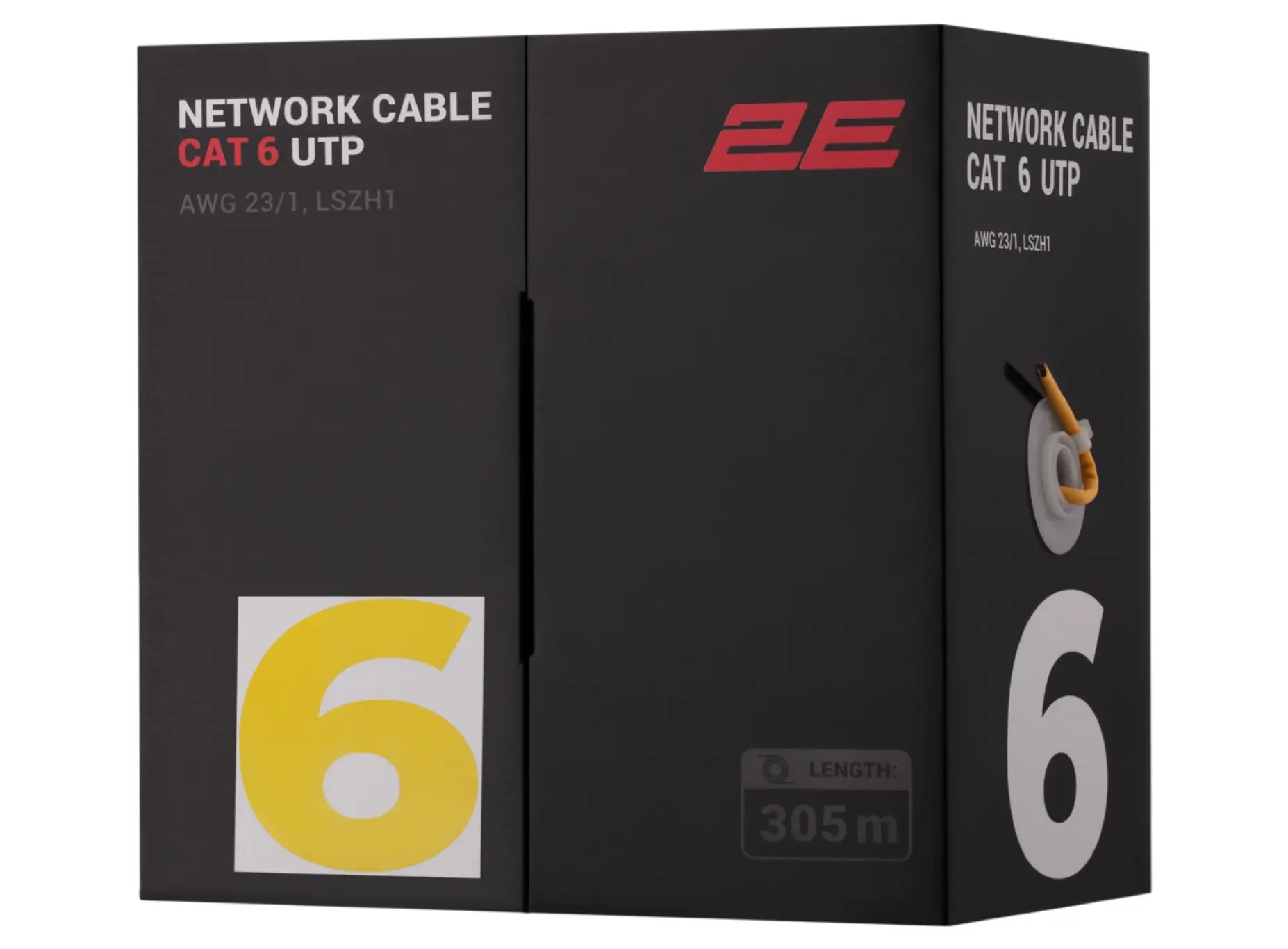 ქსელის კაბელი 2E CAT 6 UTP, 305m, AWG 23/1, LSZH-1 305M/Easy pull box packing | yellow