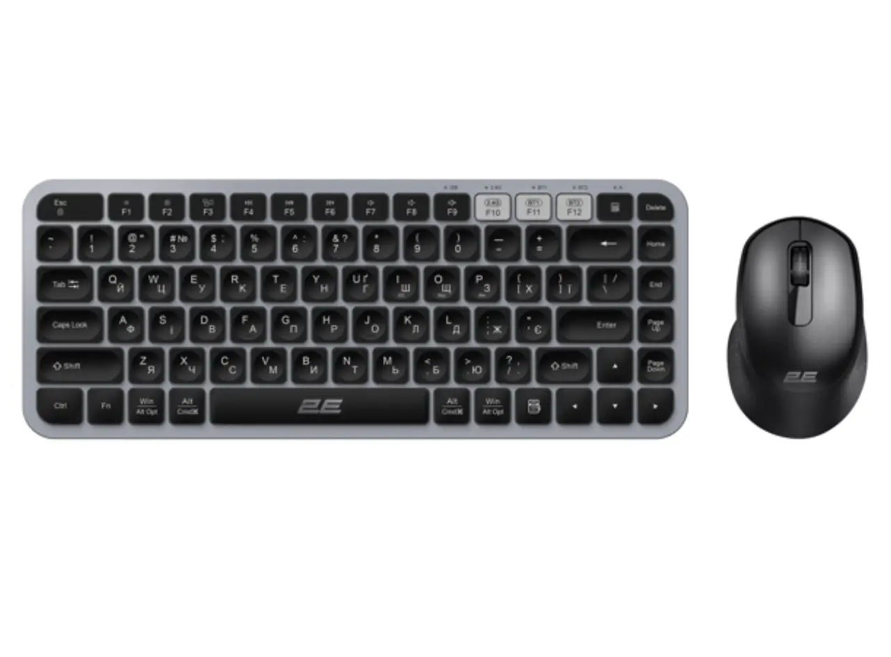 კლავიატურა და მაუსი 2E Combo keyboard and mouse MK430 WL/BT, EN/UK, grey-black