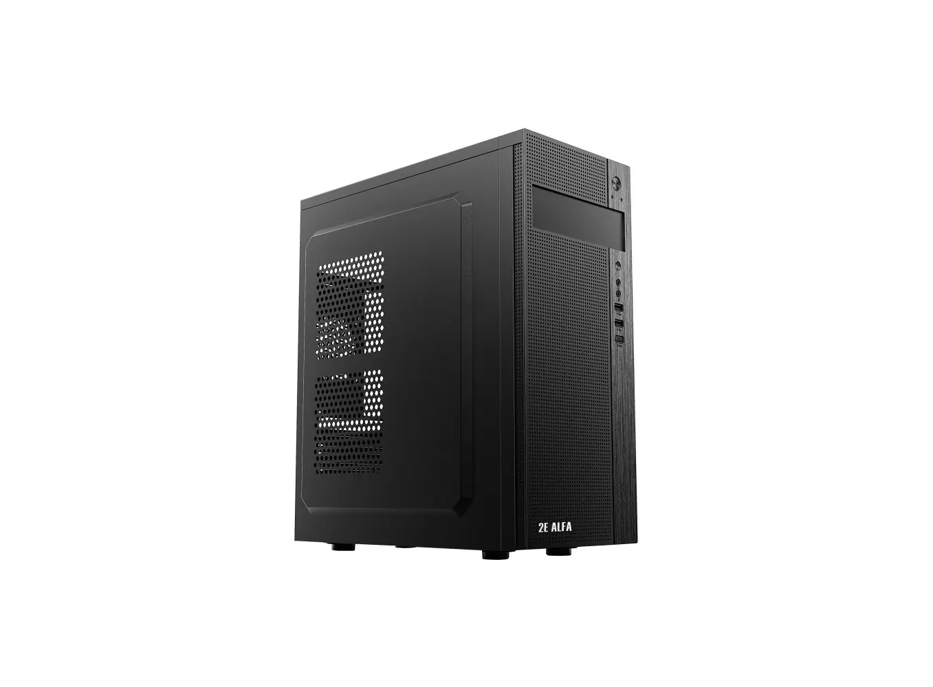 ქეისი 2E E185 Computer Case ALFA MidT, 2x USB2.0, 1x USB3.0, Steel (Side Panel), Without PSU, Black