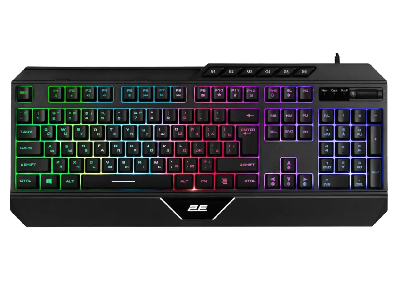 კლავიატურა 2E GAMING Membrane keyboard KG315 110key, USB-A, EN/RU, RGB, black