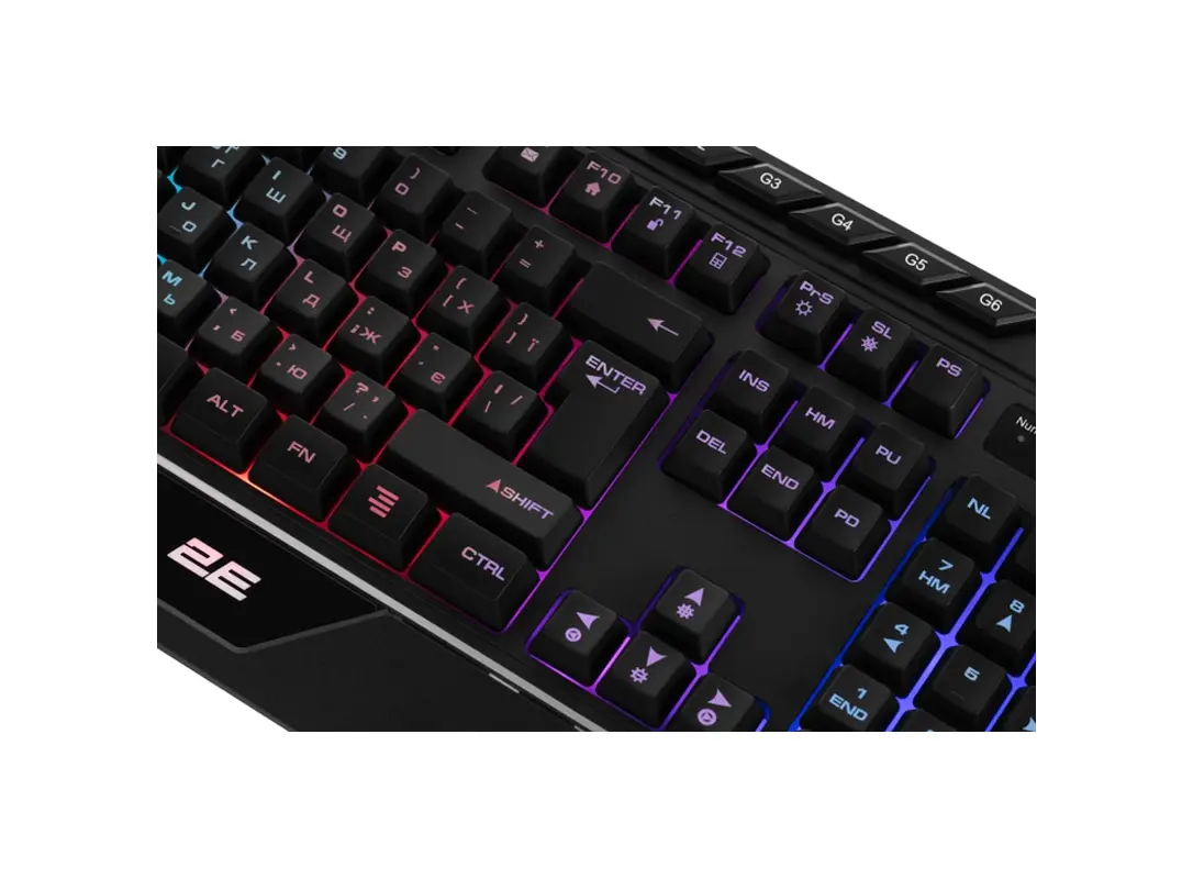 კლავიატურა 2E GAMING Membrane keyboard KG315 110key, USB-A, EN/UA, RGB, black
