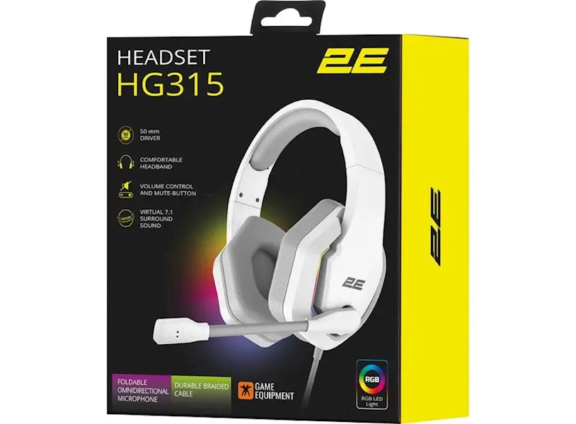 ყურსასმენი 2E HG315 Gaming Headset, Wired, RGB, USB, White