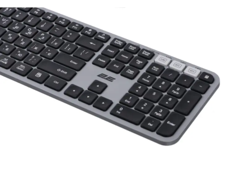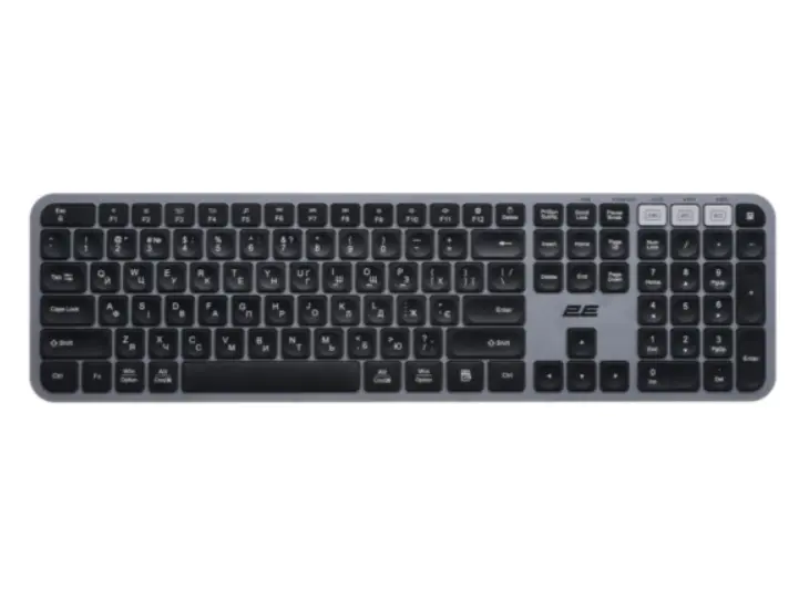 კლავიატურა 2E Keyboard membrane KS240 110key, WL/BT, EN/UK, grey-black