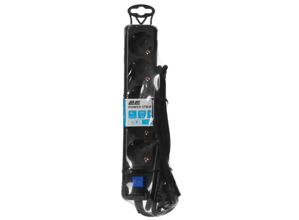 დენის დამაგრძელებელი 2E Power strip 5XSchuko with switch, 3G*1.5мм, 1.5m, black