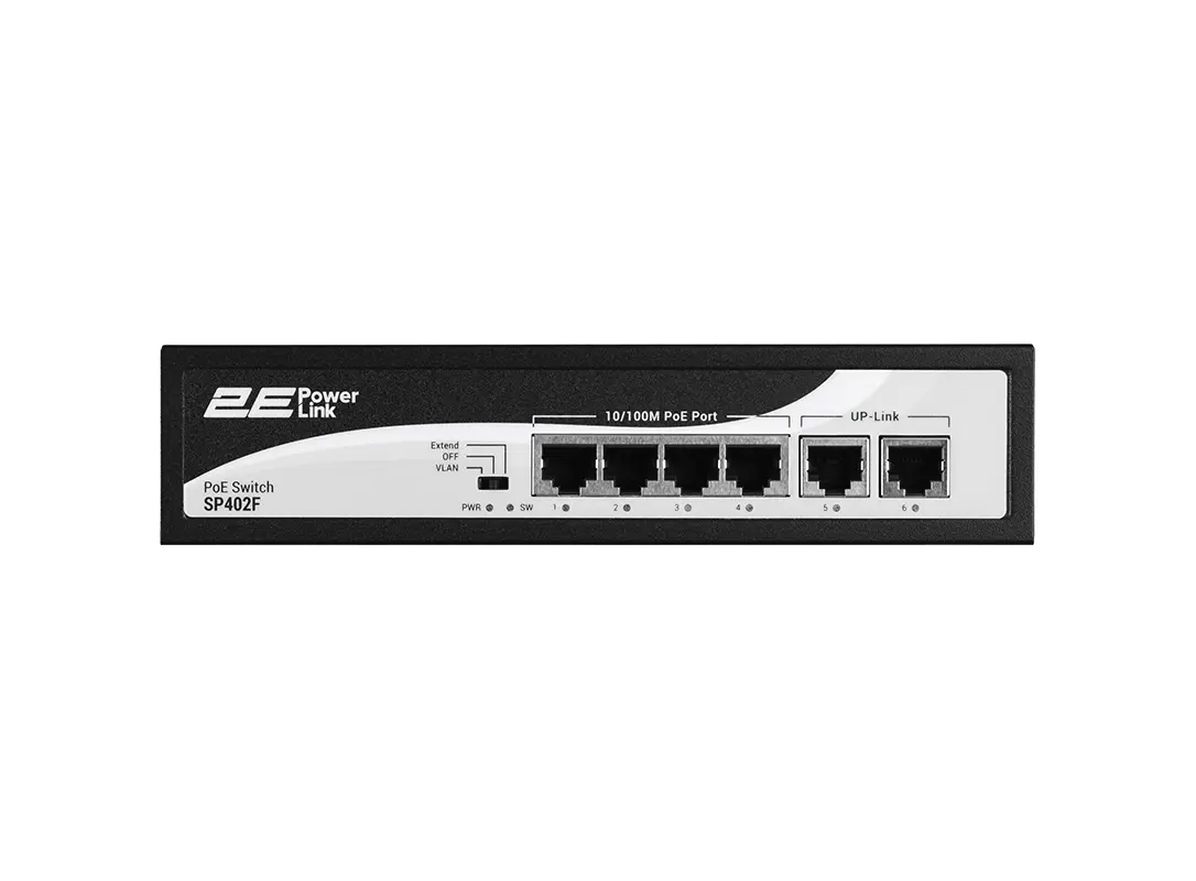 სვიჩი 2E PowerLink Switch SP402F 6xFE (4xPoE, 2xUplink), 55W, Unmanaged