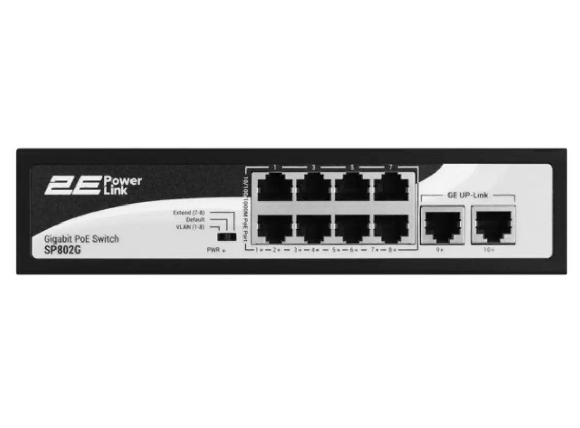 სვიჩი 2E PowerLink SP802G წარმოადგენს მძლავრ და საიმედო ქსელურ გადაწყვეტილებას მცირე და საშუალო ზომის ქსელებისთვის. მოწყობილობა აღჭურვილია 10 გიგაბიტური პორტით, რომელთაგან 8 მხარს უჭერს PoE ტექნოლოგიას (Power over Ethernet), რაც საშუალებას იძლევა ქსელის მოწყობილობების — კამერების, წვდომის წერტილებისა და ტელეფონების — კვება პირდაპირ Ethernet კაბელით. დამატებით 2 Uplink პორტი უზრუნველყოფს სწრაფი კავშირის შესაძლებლობას მთავარ სერვერებთან ან სხვა სვიჩებთან. 120W საერთო სიმძლავრე და Unmanaged არქიტექტურა იძლევა მარტივ ინსტალაციასა და გამოყენებას. 2E PowerLink SP802G გამოირჩევა სტაბილურობით, ენერგოეფექტურობითა და კომპაქტური დიზაინით, რაც მას აქცევს იდეალურ არჩევანად ოფისებისა და უსაფრთხოების სისტემებისთვის.
