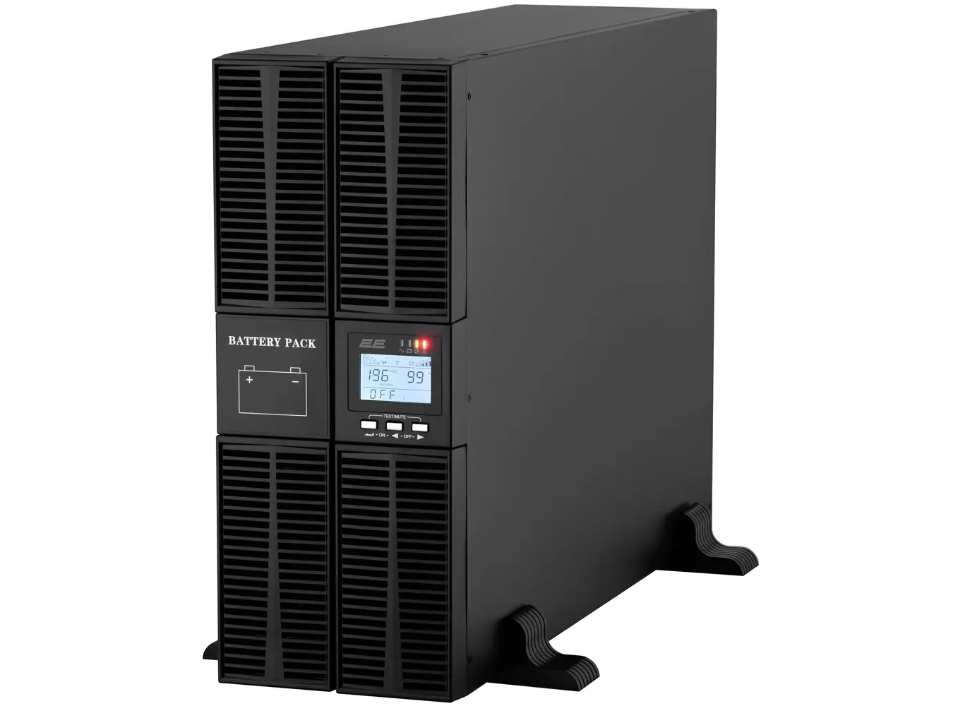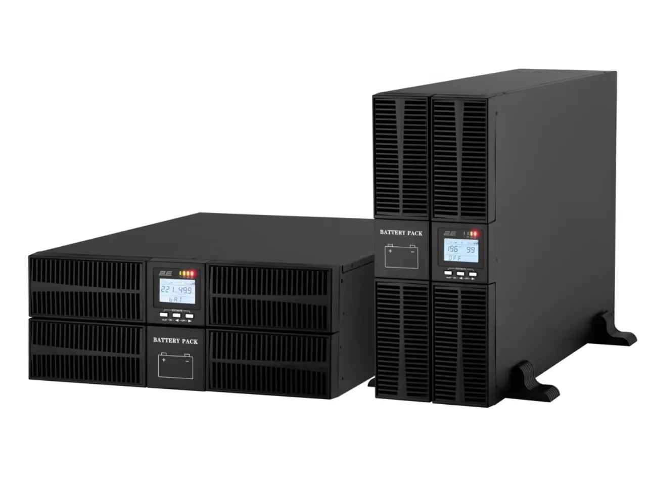 უწყვეტი კვების წყარო 2E SD6000RT წარმოადგენს მძლავრ და პროფესიონალურ UPS სისტემას, რომელიც უზრუნველყოფს 6kVA/6kW სიმძლავრეს და იდეალურია სერვერებისთვის, მონაცემთა ცენტრებისთვის, ქსელური და ინდუსტრიული ინფრასტრუქტურისთვის. RT4U ფორმ-ფაქტორი უზრუნველყოფს მოქნილ მონტაჟს როგორც რეკში, ისე სამაგიდო ვარიანტში. მოწყობილობა აღჭურვილია ინფორმაციული LCD ეკრანით, USB პორტით და ტერმინალური შესასვლელი/გამოსასვლელი კავშირებით, რაც უზრუნველყოფს გამარტივებულ მართვასა და მონიტორინგს. 2E SD6000RT გამოირჩევა მაღალი ენერგოეფექტიანობით, სტაბილურობით და ელექტრომოწოდების დაცვით უეცარი გათიშვებისა და ძაბვის რყევებისგან. იდეალურია კომპანიის უსაფრთხო და უწყვეტი მუშაობისთვის.