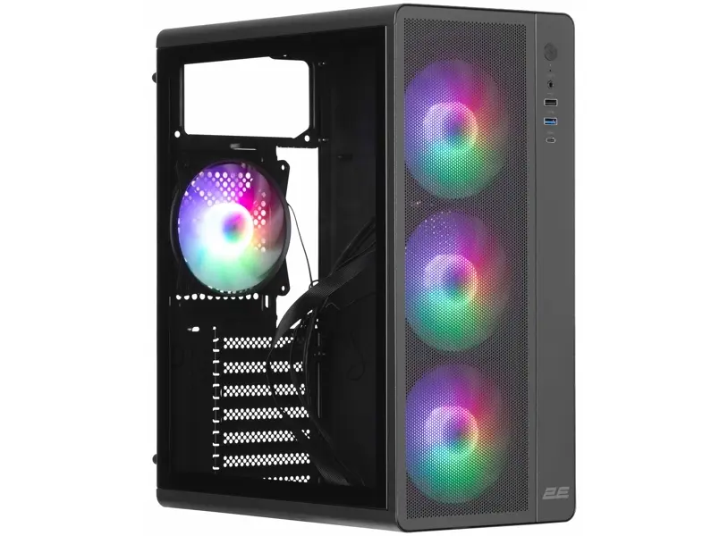 კომპიუტერის ქეისი 2E-V510B, PC case 2E GAMING Credo Plus V510B without PSU, 1xUSB3.0, 1х USB 2.0, 1xUSB Type-C, 4x120mm RGB Rainbow, VGA 310mm, TG Side Panel, ATX, black