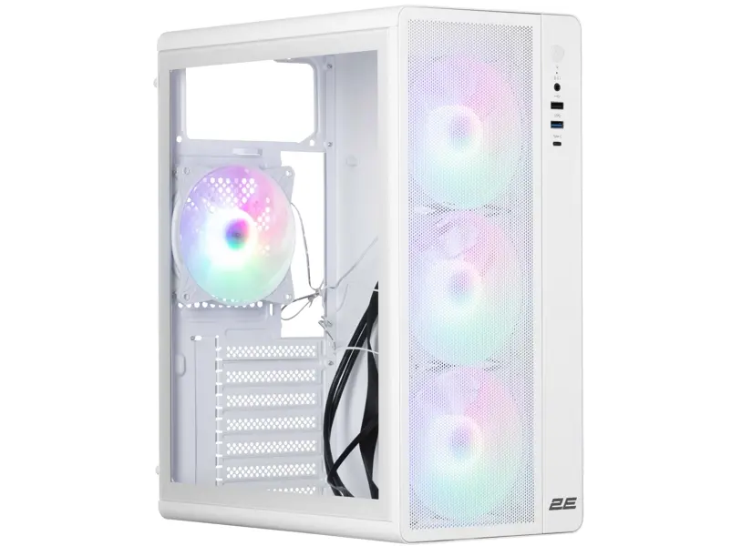 კომპიუტერის ქეისი 2E-V510W, PC case 2E GAMING Credo Plus V510W without PSU, 1xUSB3.0, 1х USB 2.0, 1xUSB Type-C, 4x120mm RGB Rainbow, VGA 310mm, TG Side Panel, ATX, white