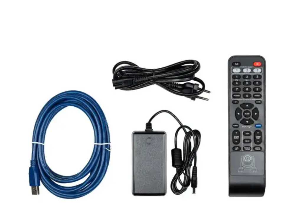 - კომპლექტაცია: ინსტრუქცია / კონფერენციის კამერა / კვების ბლოკი / ჭერის სამაგრი / სამაგრი ხრახნები / დისტანციური მართვა / USB კაბელი