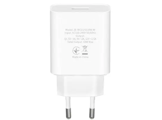 მობილურის დამტენი 2Е-WC1USB18W-W, Wall Charger USB QC3.0 DC5V/3A, Max 18W, White