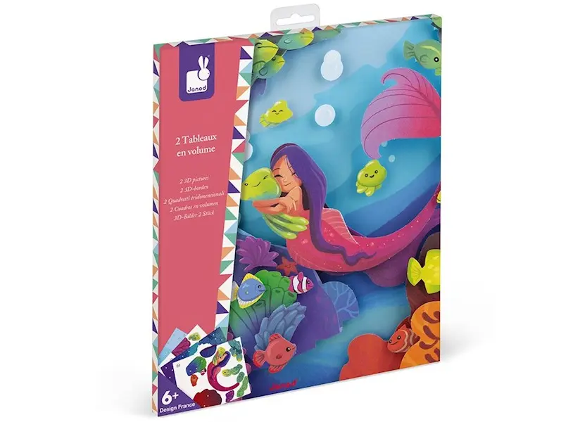 3D სურათების შემოქმედებითი ნაკრები, რომელიც სიცოცხლეს ანიჭებს ფერიების და ქალთევზების სამყაროს. შეიცავს შემოქმედებით კოლოფს, რომელსაც აქვს ორი 3D ნახატი ქალთევზებისა და ფერიების თემაზე. ორი სურათის დაწერის შემდეგ, ჩამოკიდეთ ისინი უკანა კაუჭის წყალობით, რომ დაამშვენოთ თქვენი ოთახი. თამაშები შემოქმედებითი კომპლექტით იდეალურია სხვადასხვა უნარების განვითარებისათვის.