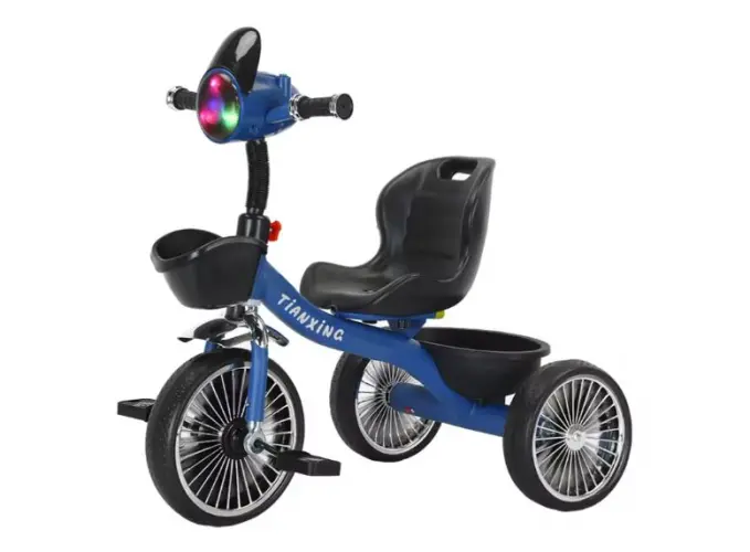 ბავშვთა სამთვალა პედლებიანი ველოსიპედი 602BLU წარმოადგენს იდეალურ არჩევანს 3-დან 6 წლამდე ასაკის ბავშვებისთვის, რომლებიც იწყებენ ველოსიპედის მართვის სწავლას. ლურჯი ფერის მიმზიდველი დიზაინი იპყრობს პატარების ყურადღებას და აქცევს ველოსიპედს საყვარელ სათამაშოდ. სამბორბლიანი სტაბილური კონსტრუქცია უზრუნველყოფს უსაფრთხოებას და ამცირებს გადაბრუნების რისკს. წინა პედლები ხელს უწყობს მოძრაობის კოორდინაციის განვითარებას და აყალიბებს ჯანსაღ ფიზიკურ ჩვევებს. მოდელს აქვს რბილი სავარძელი, მოსახერხებელი სახელურები და გამძლე ბორბლები, რაც უზრუნველყოფს კომფორტულ და გლუვ სვლას. შესაფერისია როგორც შიდა, ისე გარე გამოყენებისთვის.