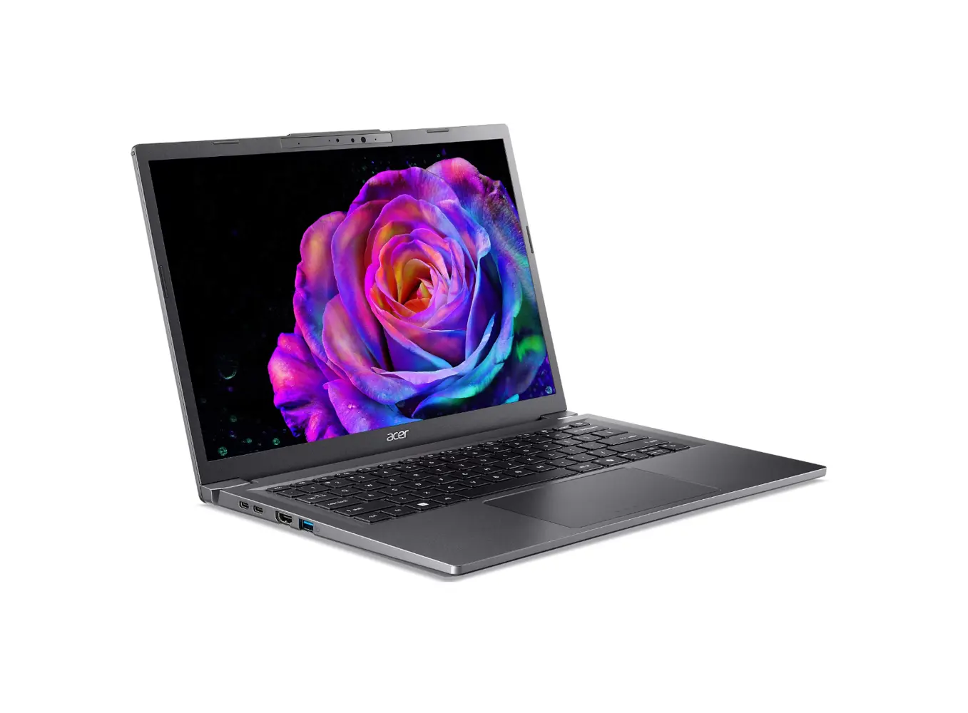 ნოუთბუქი Acer Aspire 14 AI A14-52M წარმოადგენს პრემიუმ კლასის, თანამედროვე მოწყობილობას, რომელიც შექმნილია მაღალი წარმადობისა და ვიზუალური სრულყოფილებისთვის. აღჭურვილია Intel Core Ultra 5 226V პროცესორით, 16GB DDR5X მეხსიერებით და 512GB PCIe NVMe SSD დისკით, რაც უზრუნველყოფს ელვისებურ სიჩქარესა და გამართულ მუშაობას ნებისმიერ ამოცანაში. 14-დიუმიანი OLED WUXGA ეკრანი 100% DCI-P3 და Adobe RGB ფერთა სპექტრით იძლევა ზუსტ, მდიდარ და რეალისტურ ფერებს, რაც იდეალურია გრაფიკულ დიზაინსა და მულტიმედიაზე მუშაობისთვის. AI ინტეგრირებული სისტემა უზრუნველყოფს ენერგოეფექტურობასა და ინტელექტუალურ წარმადობას. კომპაქტური და მსუბუქი დიზაინი, Wi-Fi 6E და Windows 11 Home ოპერაციული სისტემა ხდის Acer Aspire 14-ს სრულყოფილ არჩევანად თანამედროვე პროფესიონალებისთვის.
