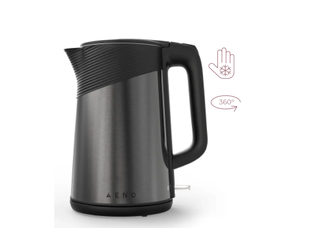 AENO Electric Kettle EK3 არის დახვეწილი და უსაფრთხო ელექტრო ჩაიდანი, რომელიც შექმნილია თქვენს სამზარეულოში მაქსიმალური კომფორტის შესაქმნელად. მოწყობილობა აღჭურვილია ორმაგი კედლების ტექნოლოგიით, რაც უზრუნველყოფს სითბოს ხანგრძლივ შენარჩუნებას და ამავდროულად იცავს კორპუსის ზედაპირს გადახურებისგან, რაც მის გამოყენებას სრულიად უსაფრთხოს ხდის. ბრიტანული Strix კონტროლერი გარანტიას იძლევა მოწყობილობის ხანგრძლივი და საიმედო მუშაობისთვის. 1.7 ლიტრიანი მოცულობა და 2200 ვატიანი სიმძლავრე განაპირობებს წყლის სწრაფ ადუღებას, ხოლო ავტომატური გათიშვისა და მშრალი რეზერვუარისგან დაცვის ფუნქციები თავიდან აგაცილებთ დაზიანებებს. ჩაიდნის შიდა ნაწილი დამზადებულია მაღალი ხარისხის უჟანგავი ფოლადისგან, რაც უზრუნველყოფს წყლის სისუფთავეს და ბუნებრივ გემოს. ელეგანტური მინიმალისტური დიზაინი იდეალურად ერგება ნებისმიერ თანამედროვე ინტერიერს და ხდის მას თქვენი ყოველდღიურობის განუყოფელ ნაწილად.