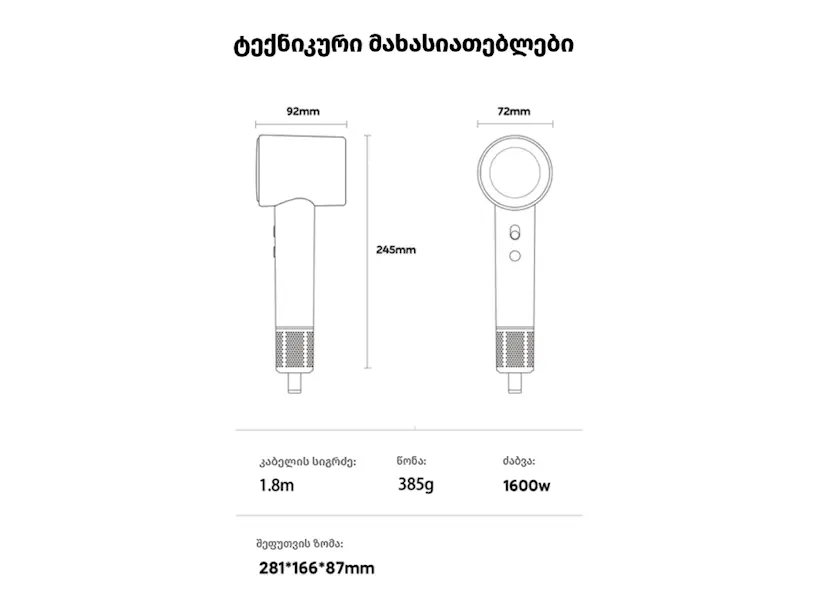 - ფუნქცია: თმის სწრაფი გაშრობა