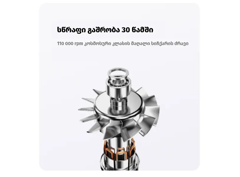 - ძრავის სიჩქარე: 110000 rpm