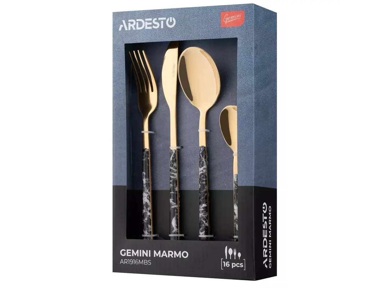 დანა ჩანგლის ნაკრები Ardesto AR1916MBS Gemini Marmo, 16pcs, Cutlery Set, Golden/Black