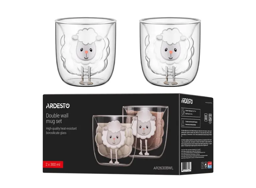 ჭიქების ნაკრები Ardesto AR2630BWL, 300ml, 2pcs, Double Wall Mug Set, Transparent