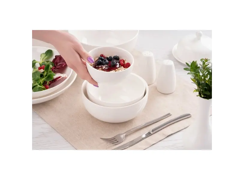 Ardesto Imola თასი 14 სმ დიამეტრით წარმოადგენს პრაქტიკულ და ელეგანტურ ელემენტს ყოველდღიური სუფრისთვის. დამზადებულია მაღალი ხარისხის პორცელანისგან, რომელიც გამოირჩევა გამძლეობითა და თერმული სტაბილურობით. თასის თეთრი ფერი და გლუვი ზედაპირი სუფრას სიმარტივესა და სისუფთავეს მატებს, რაც შესანიშნავად ერწყმის სხვა ჭურჭლის დიზაინს. იდეალურია სალათისთვის, დესერტისთვის, სუპისთვის ან სხვა მცირე ულუფის კერძებისთვის. შესაძლებელია მისი გამოყენება მიკროტალღურ ღუმელსა და ჭურჭლის სარეცხ მანქანაში. Ardesto Imola აერთიანებს ფუნქციურობასა და ესთეტიკას, რაც თქვენს სუფრას ხარისხიან და დახვეწილ იერს შესძენს.