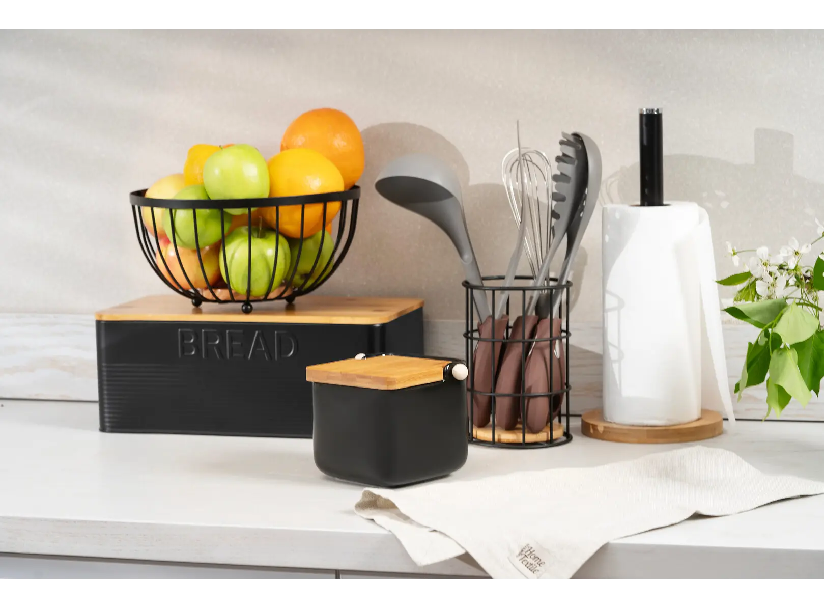 პურის შესანახი Ardesto Bread bin Midori 33х18х12cm, metal, bamboo, black