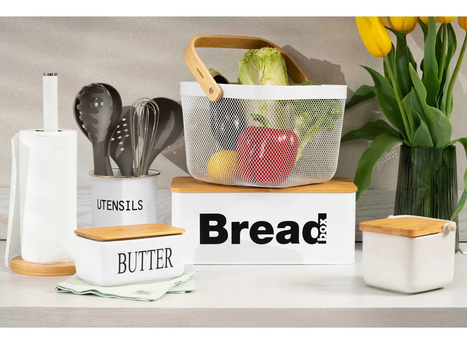 პურის შესანახი Ardesto Bread bin Midori 33х18х13cm, metal, bamboo, white