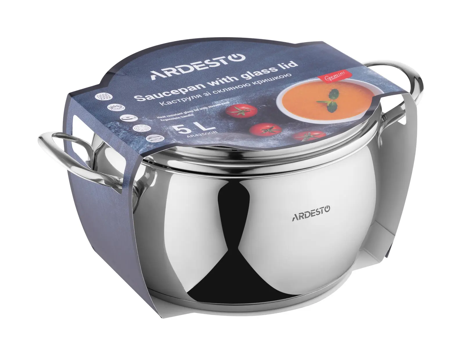 ქვაბი Ardesto Casserole with glass lid Gemini Liguria, 5l, stainless steel