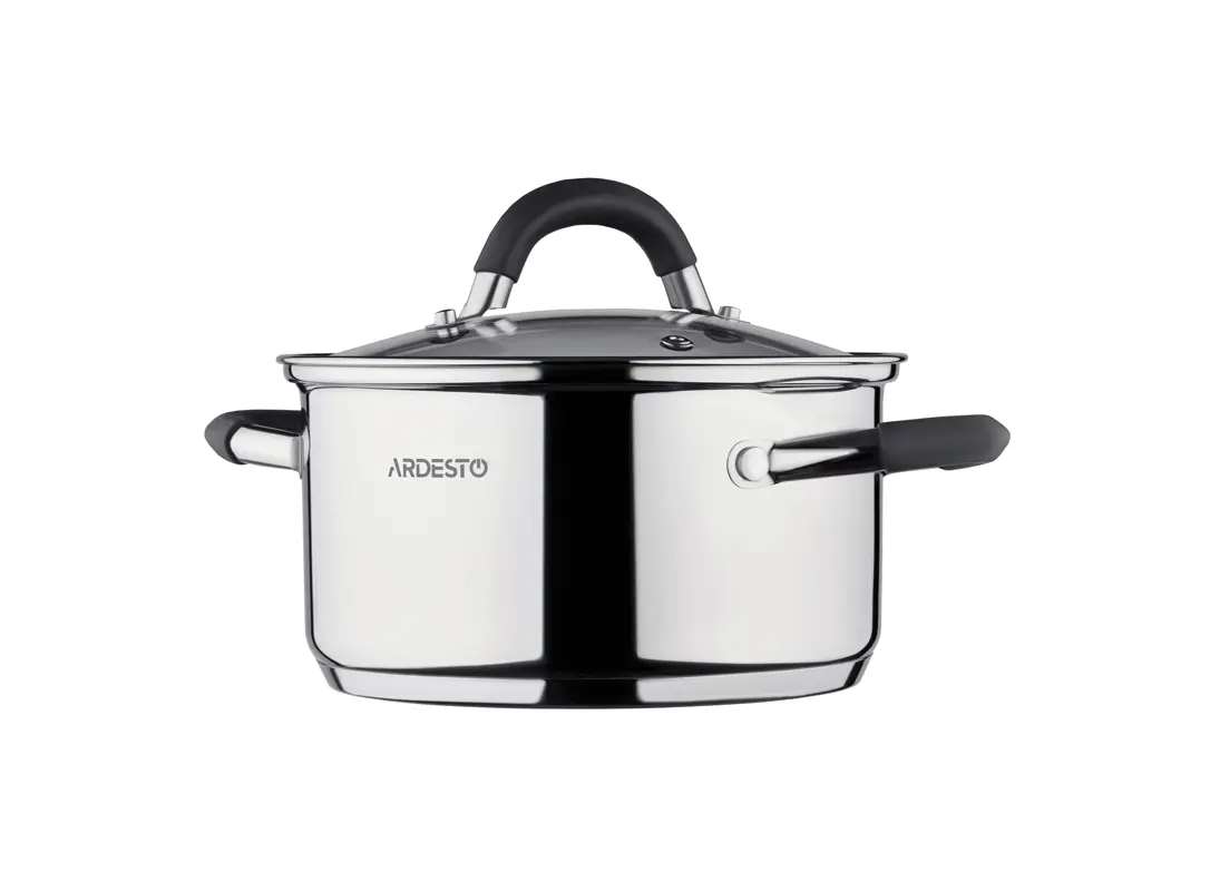 ქვაბი Ardesto Casserole with glass lid Gemini Salerno, 0.8l, stainless steel, silicone