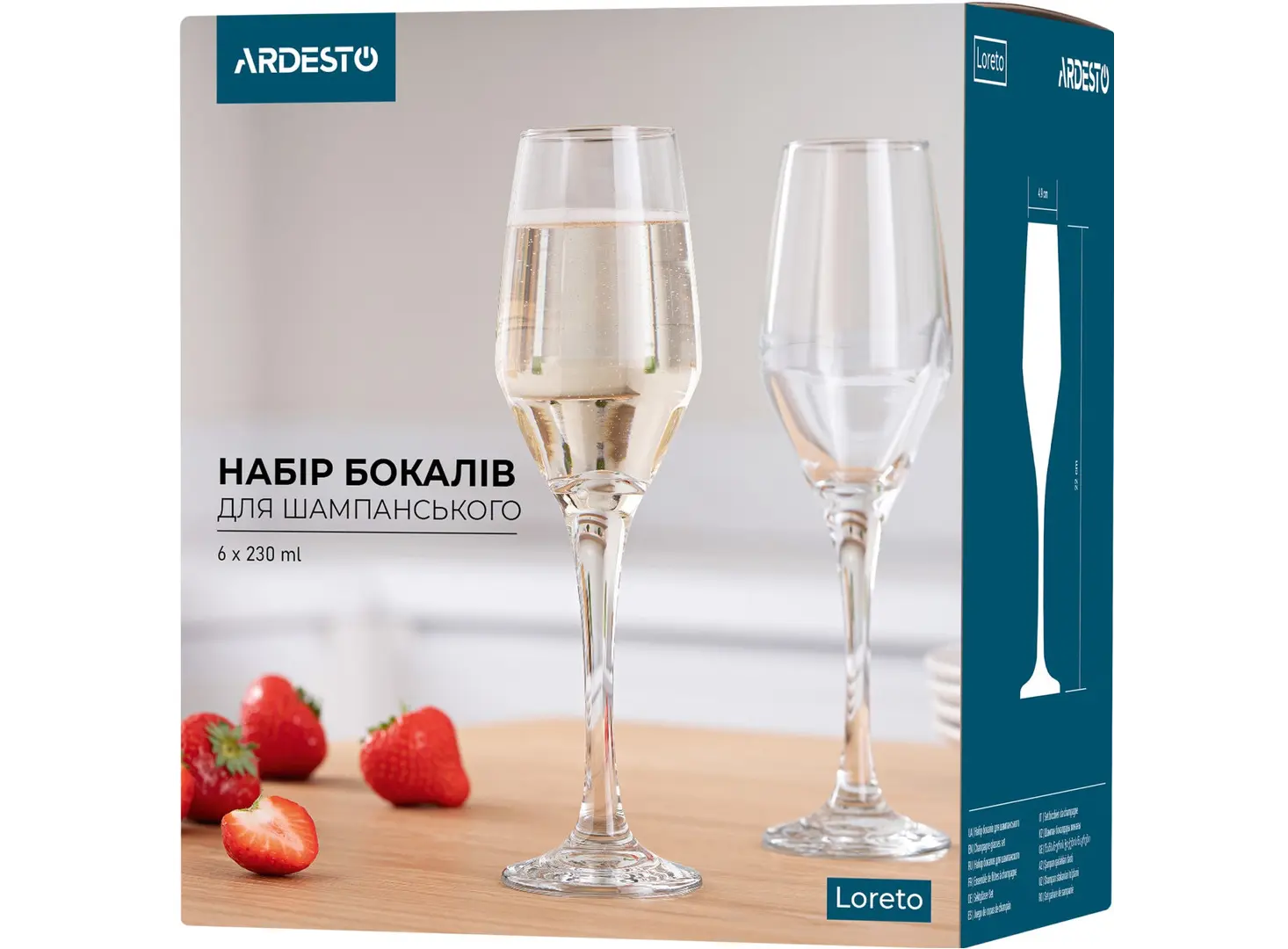 შამპანურის ჭიქები Ardesto Champagne glasses set Loreto 6 pcs, 230 ml, glass
