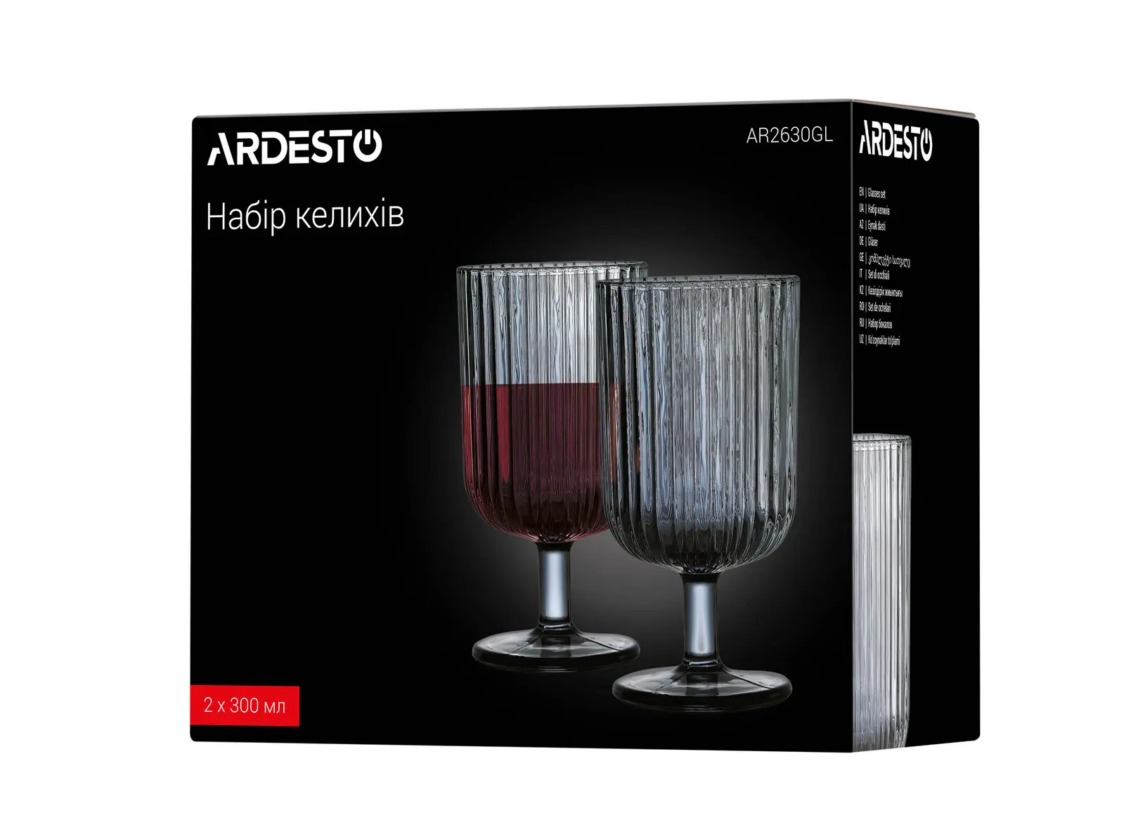 ჭიქების სეტი Ardesto glasses set Graphite, 300ml, 2pcs, glass, gray