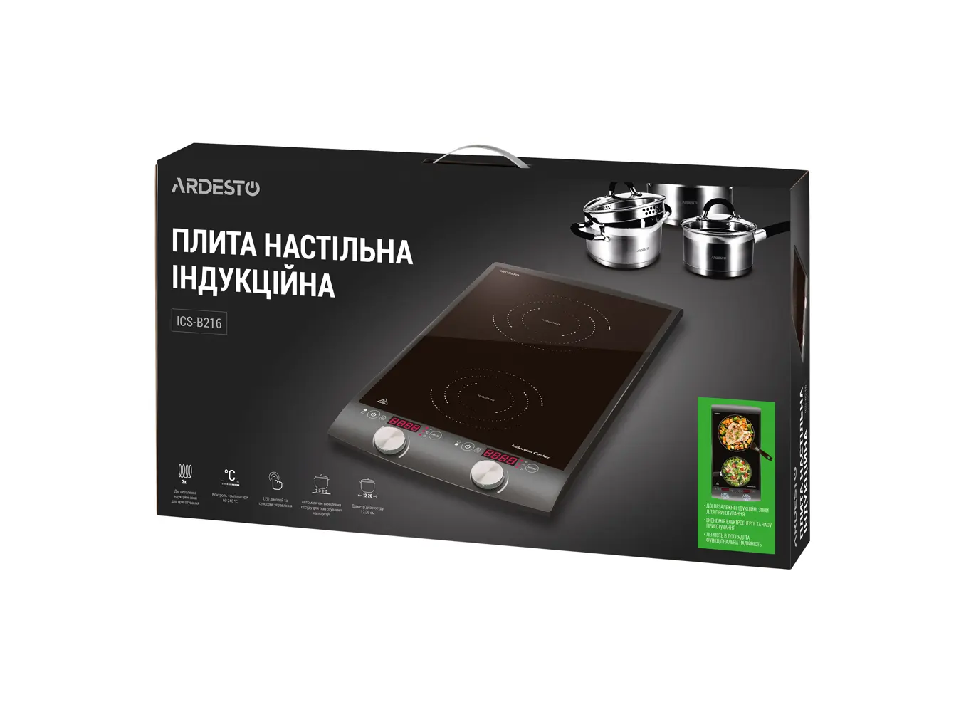 ელექტრო ზედაპირი ARDESTO ICS-B216 electric cooking plate with two hob eyes with total power of 2900 W, combined control