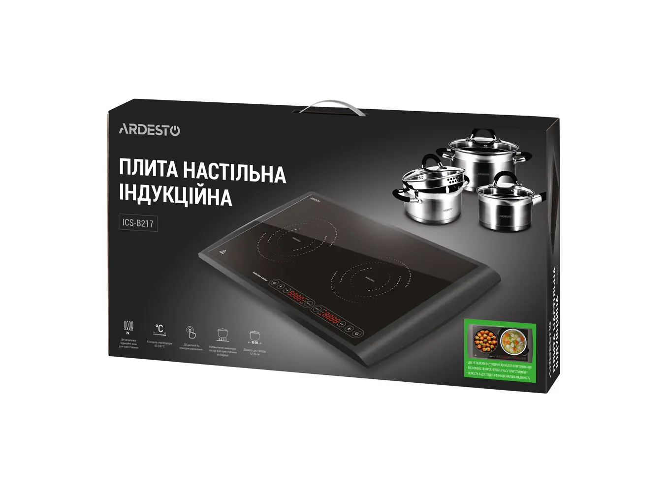 ელექტრო ზედაპირი ARDESTO ICS-B217 electric cooking plate with two hob eyes with total power of 2900 W, touch control