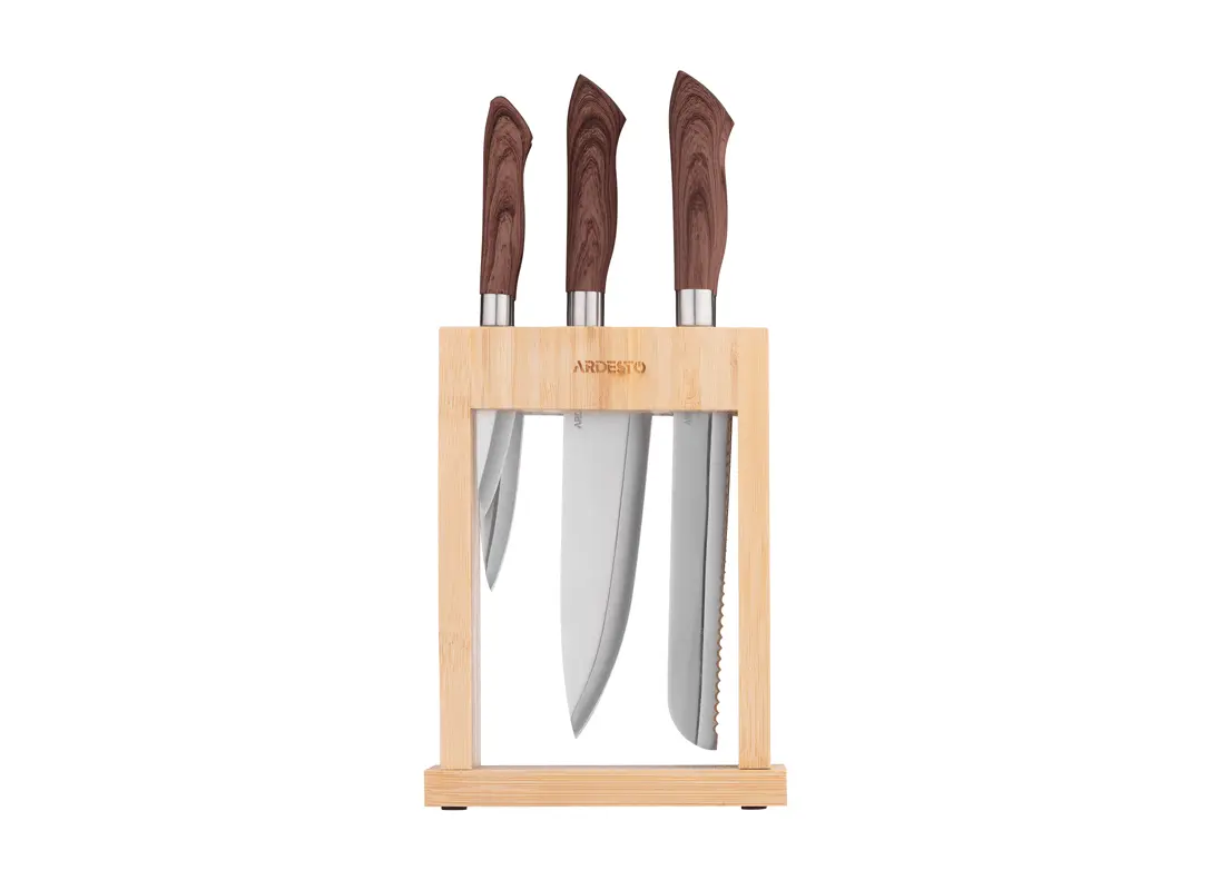 დანების კომპლექტი Ardesto Knives Set with block Midori, 6pcs, stainless steel, plastic, bamboo, brown