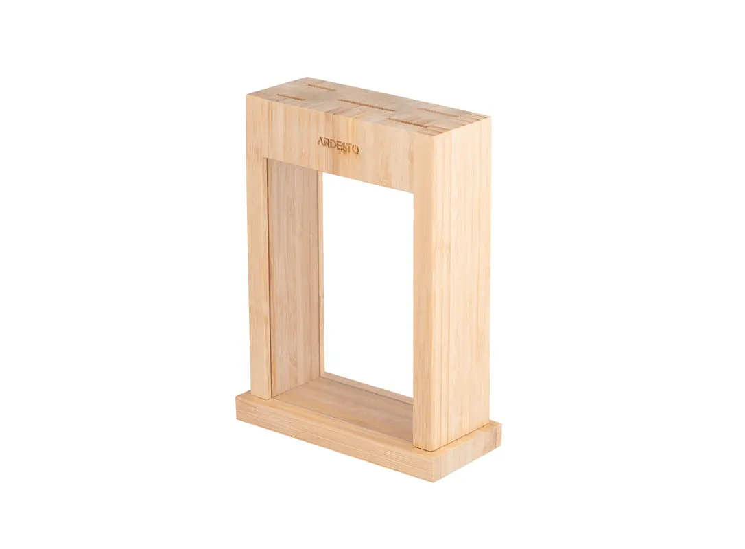 Ardesto Midori დანების კომპლექტი 6 ელემენტით იდეალური არჩევანია ნებისმიერი თანამედროვე სამზარეულოსთვის. კომპლექტი მოიცავს უმაღლესი ხარისხის უჟანგავი ფოლადის დანებს, რომლებიც უზრუნველყოფენ გამძლეობასა და ხანგრძლივ სიმკვეთრეს. ერგონომიული პლასტმასის სახელურები კომფორტულ მოჭიდებასა და უსაფრთხო გამოყენებას უზრუნველყოფს, რაც ხელს უწყობს ხანგრძლივი მუშაობის პროცესს. კომპლექტში შედის ბამბუკის ბლოკი, რომელიც არამარტო ფუნქციურია, არამედ დამატებით ელეგანტურობას სძენს სამზარეულოს ინტერიერს. მყარი და ეკოლოგიური ბამბუკის ბაზა უზრუნველყოფს დანების ორგანიზებულ და დაცულ შენახვას. Ardesto Midori დანების ნაკრები იდეალურია სხვადასხვა ტიპის საკვების დასაჭრელად, რაც მას შეუცვლელ აქსესუარად აქცევს როგორც პროფესიონალური მზარეულებისთვის, ასევე ყოველდღიური მომხმარებლებისთვის.
