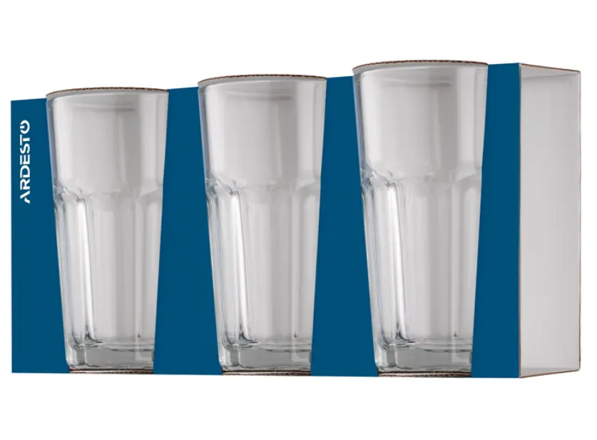 წვენის ჭიქების ნაკრები Ardesto Long Drink set Salerno 360 ml, 3 pcs, glass