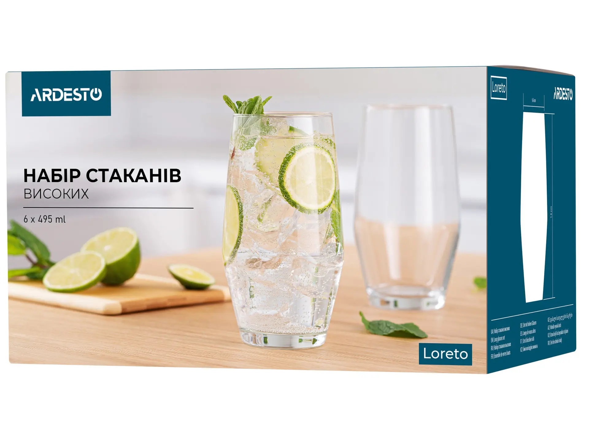 ჭიქების ნაკრები Ardesto Long glasses set Loreto 495 ml, 6 pcs, glass