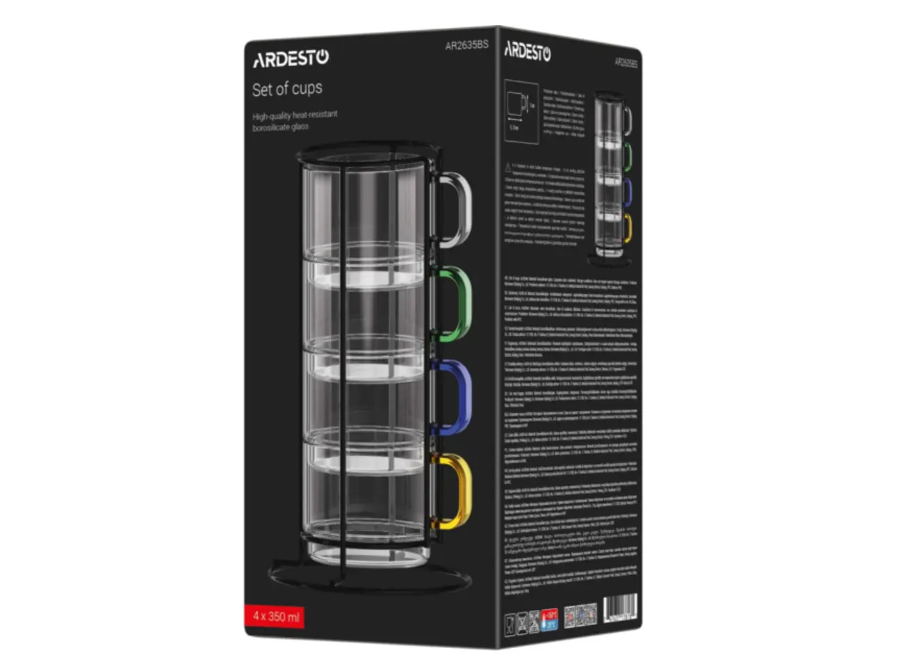 ჭიქების ნაკრები Ardesto Set of cups 350ml, 4pcs, borosilicate glass, transparent
