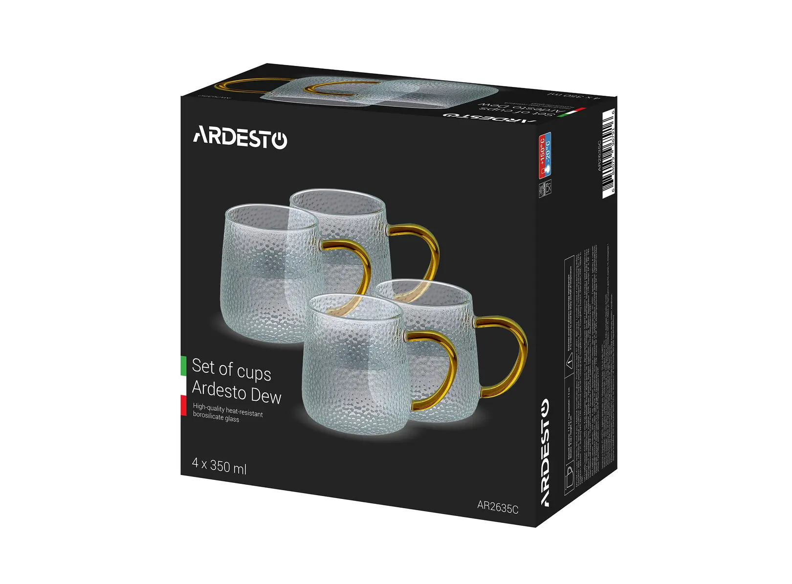 ჭიქების ნაკრები Ardesto Set of cups Dew, 350ml, 4pcs, borosilicate glass, transparent