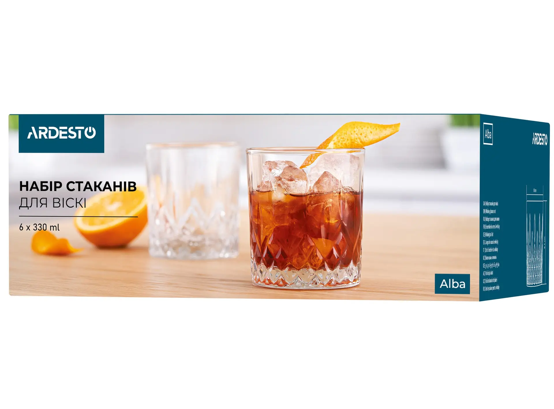 ჭიქების ნაკრები Ardesto Whiskey glasses set Alba 330 ml, 6 pcs, glass