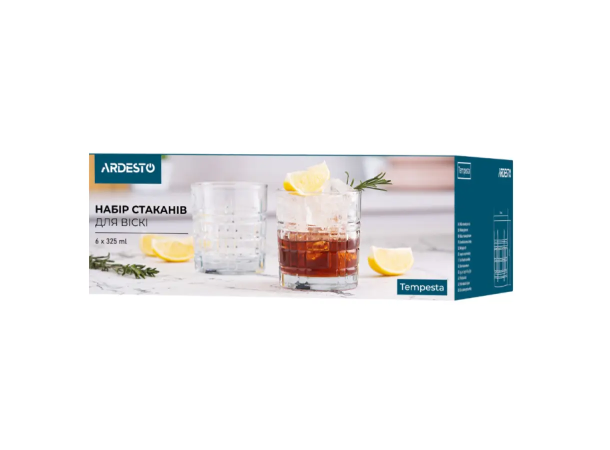 ვისკის ჭიქების ნაკრები Ardesto Whiskey glasses set Tempesta 325 ml, 6 pcs, glass