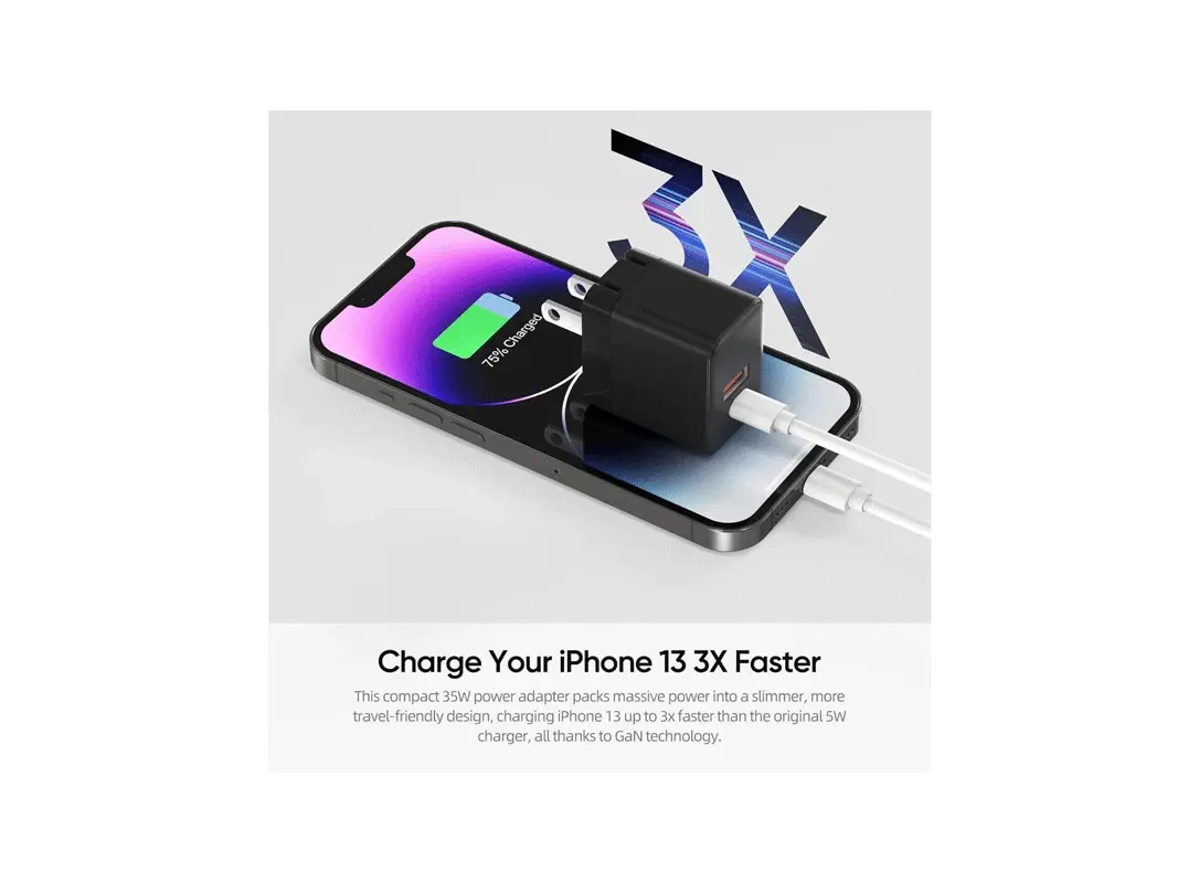 Arzopa C35 GaN Power Adapter არის კომპაქტური და მძლავრი დამტენი, რომელიც უზრუნველყოფს 35W სიმძლავრის სწრაფ დატენვას. მისი GaN (გალიუმის ნიტრიდი) ტექნოლოგია უზრუნველყოფს მაღალ ენერგოეფექტურობას და კომპაქტურ ზომებს, რაც იდეალურია როგორც სახლის, ისე მოგზაურობისთვის. დამტენი აღჭურვილია USB-A და USB-C პორტებით, რაც საშუალებას გაძლევთ ერთდროულად დატენოთ სხვადასხვა მოწყობილობა, მათ შორის სმარტფონები, ტაბლეტები და პატარა ლეპტოპები. Arzopa C35 გამოირჩევა უსაფრთხოების მულტიფუნქციური სისტემით, რომელიც იცავს მოწყობილობებს გადახურების, გადატვირთვისა და მოკლე ჩართვისგან.