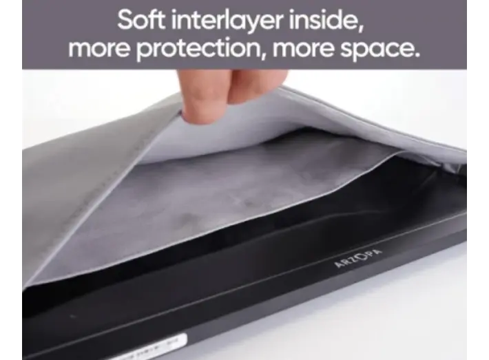 Arzopa Portable Monitor Sleeve Bag 16.1" გთავაზობთ სტილურ და ფუნქციურ გადაწყვეტას თქვენი პორტატული მონიტორის უსაფრთხო ტრანსპორტირებისთვის. დამზადებულია წყალგამძლე PU ტყავის მასალისგან, რომელიც იცავს მოწყობილობას ნაკაწრებისგან, მტვრისგან და წყლის ზემოქმედებისგან. რბილი შიდა საფარი უზრუნველყოფს დამატებით დაცვას და ამცირებს დაზიანების რისკს. ჩანთა აღჭურვილია უხილავი მაგნიტური საკეტით, რაც უზრუნველყოფს მონიტორის მყარ ფიქსაციას და მარტივ წვდომას. მისი თხელი და მსუბუქი დიზაინი საშუალებას გაძლევთ მარტივად მოათავსოთ ჩანთა ზურგჩანთაში, საბუთების ჩანთაში ან სამგზავრო ბარგში. იდეალურია როგორც ყოველდღიური გამოყენებისთვის, ასევე მოგზაურობისთვის.